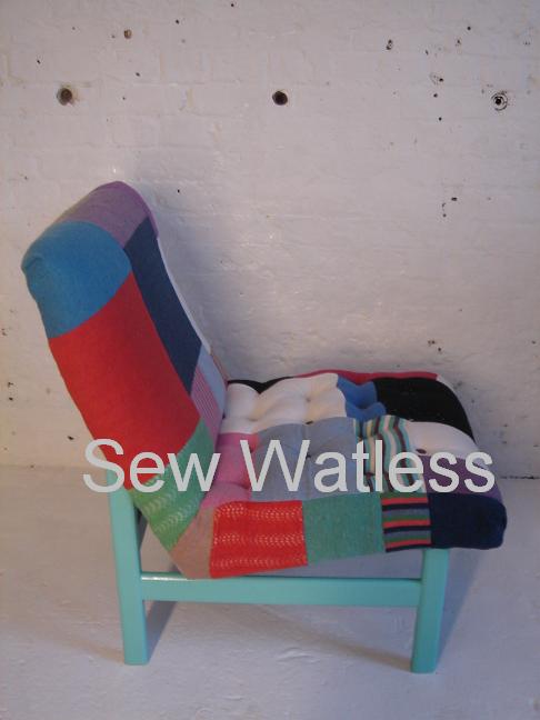 Whether it was once a Victorian Chesterfield, an Art Deco lounge chair or a 1950s Love Seat, Sew Watless manages to transform it, restore it, make-do-and-mend it into something captivating…mixing vintage jacquard fabrics with modern screen prints, distressed leathers with salvaged cashmere, carved wooden buttons with bakelite ones, which ever way he works its safe to say that Sew Watless manages to catapult it, with pure uniqueness, into a world of its own.